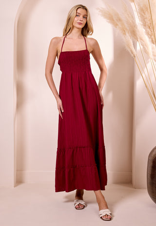 Chiffon Halter Neck Maxi Dress in Blue Grey