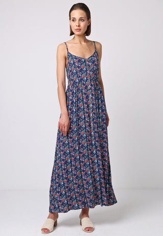 Chiffon Halter Neck Maxi Dress in Blue Floral