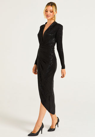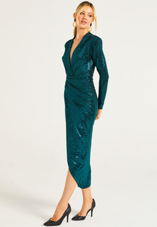 Bodycon Wrap Long Sleeve Midi Dress in Navy